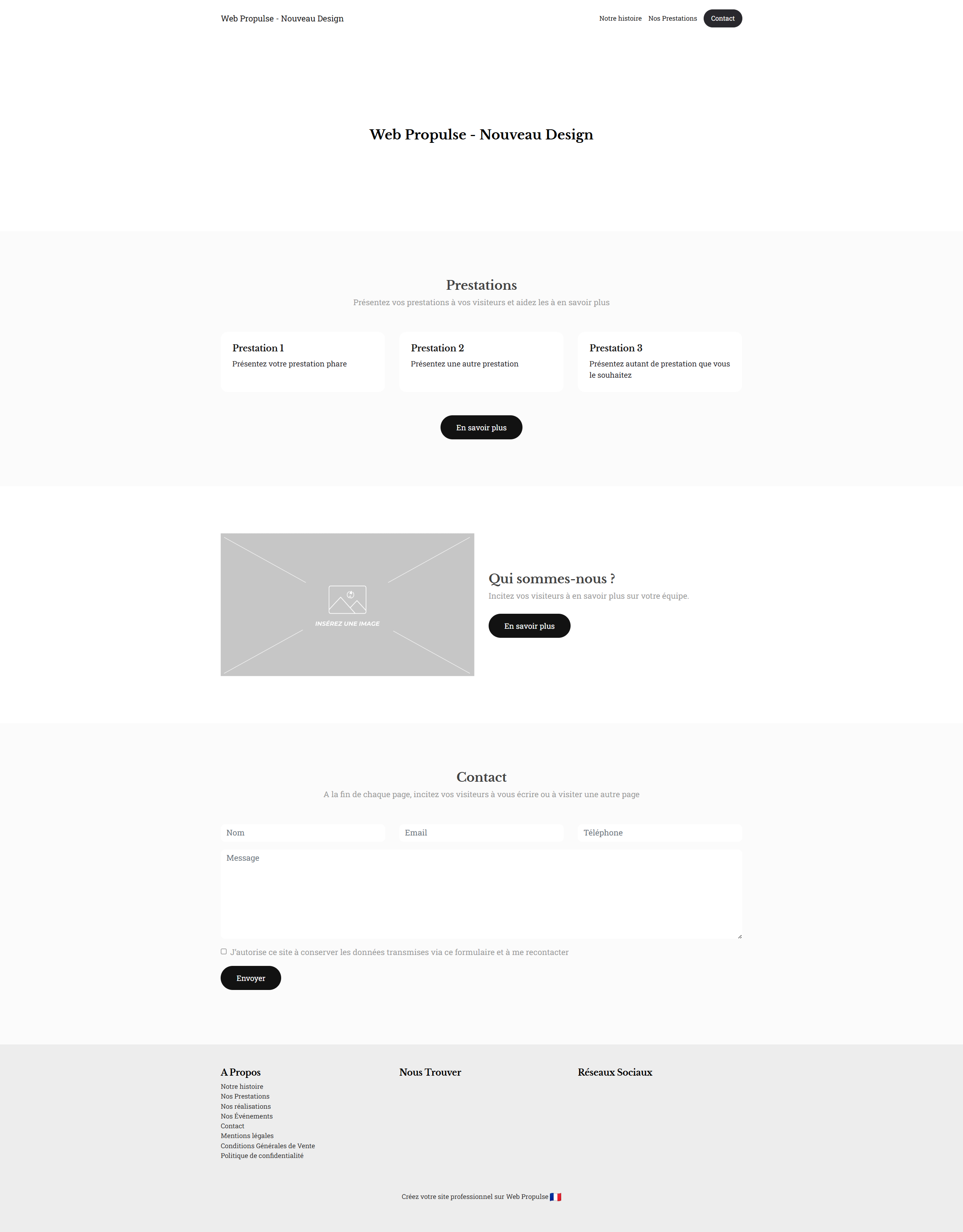 Web Propulse vous propose des thèmes pour vous faciliter la tâche dans le design de votre site internet. En choisissant un thème, vous aurez accès à ses images et vous pourrez dupliquer chacune de ses pages.